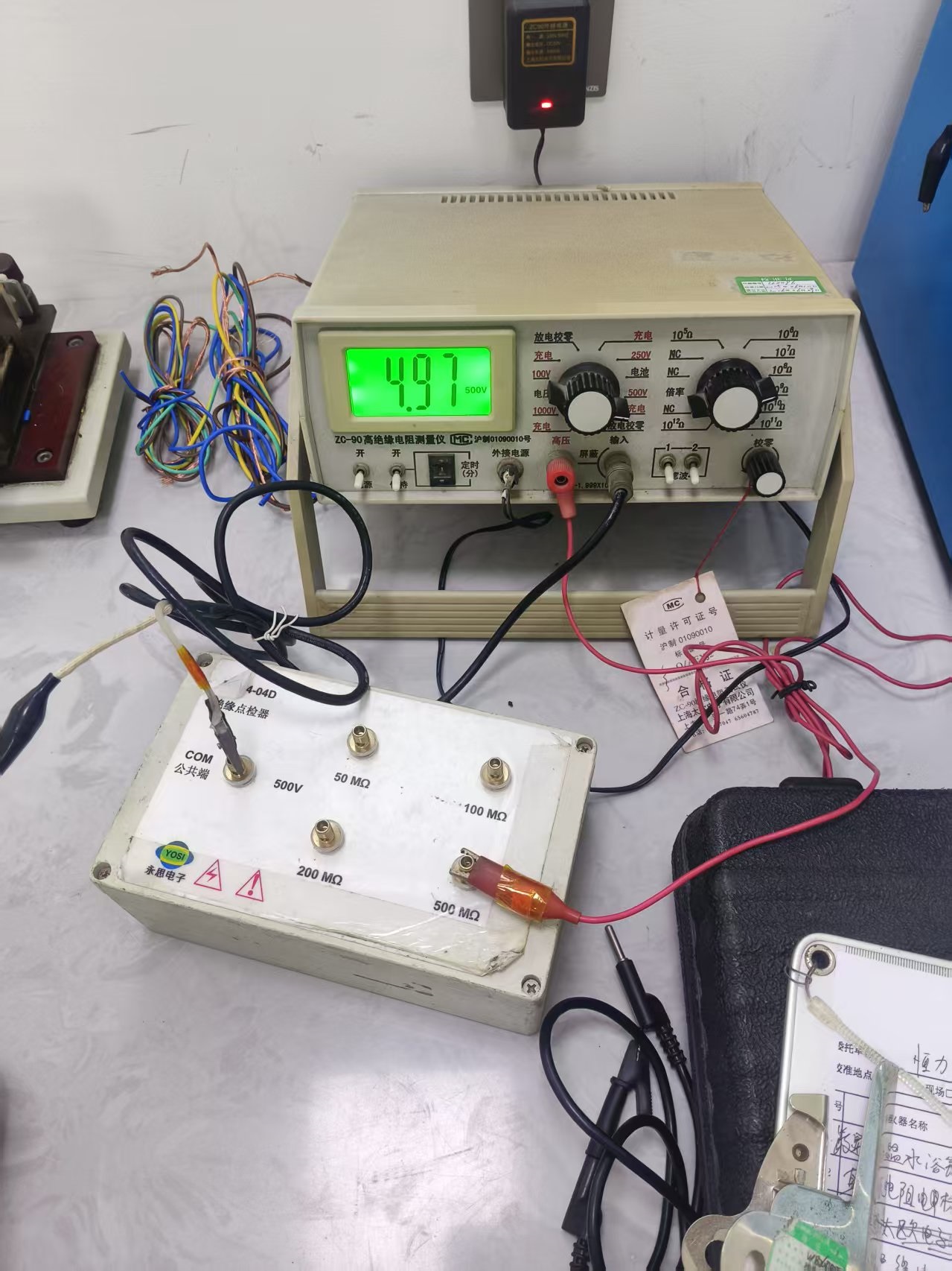« 高绝缘电阻接线图 牛灰灰 发布于 2025-6-10 22:25 阅读:293 输入黑线接com端,一般是一根一出二的线,接一个就可以了,尝试着接看看哪根是正确的。 高压线是红色的接500MΩ端, 电压设置为500V 阻值档设置为10的8次方 输入验证码
