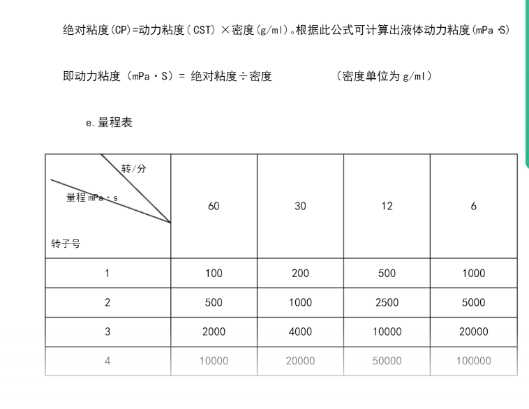 粘度范围:5-2000000CP/mpa.s(如果单位不同请按照换算表换算)